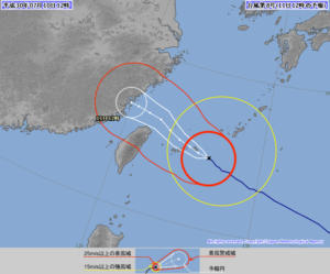 強風域に入ったので台風らしくなってきました
