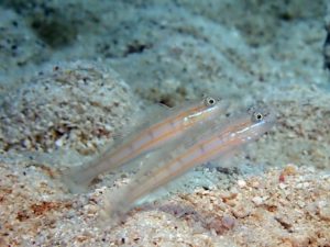ヒメクロイトハゼ。美しいけどこいつ高速で前後に振り子みたいに泳ぐのよ