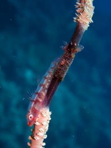 サンゴに乗ってる普通のハゼだけど・・・ヒトミシリハゼでいいのかなぁ?