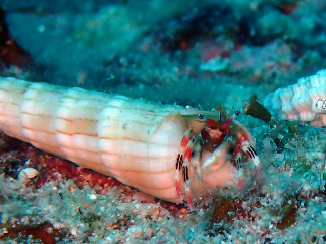 貝殻が綺麗ので撮ってみたらカザリサンゴヤドカリでした
