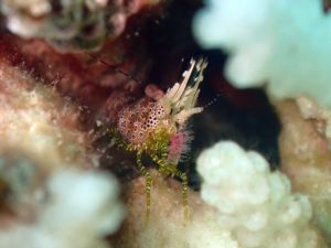 美女が自分で見つけたサンゴモエビ